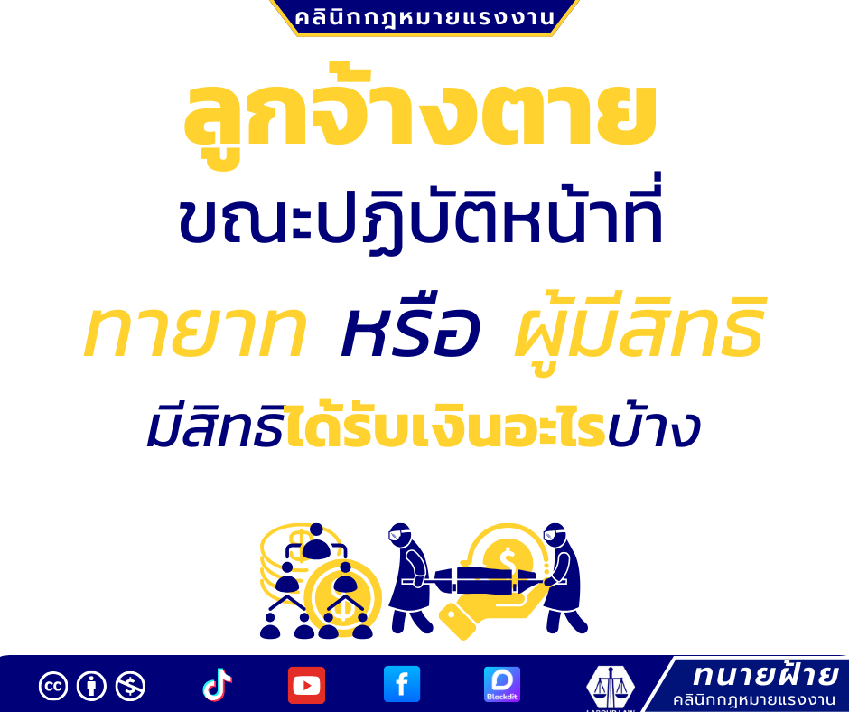ลูกจ้างตายขณะปฏิบัติหน้าที่ ทายาทหรือผู้มีสิทธิ มีสิทธิได้รับเงินอะไรบ้างคะพี่ทนายฝ้าย??